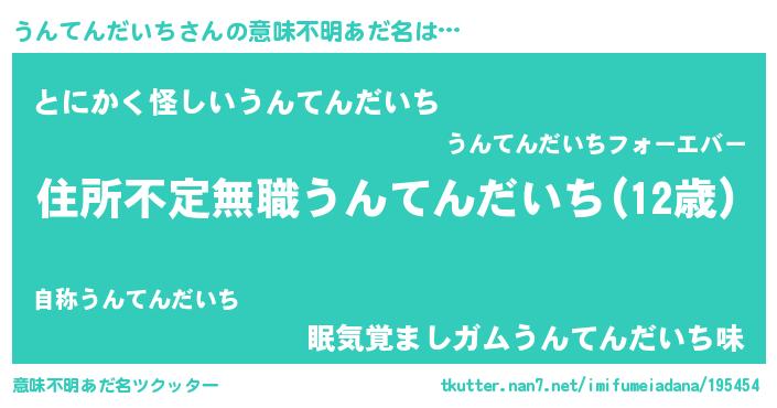 | 女子向けラノベタイトル風あだ名 | 『うんてんだいちが死なない童話 林檎のうんてんだいちの診療簿』 |