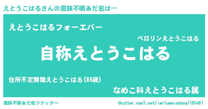 | 男性向けラノベタイトル風あだ名 | 『うちのえとうこはるが世界を掌握している!』 |