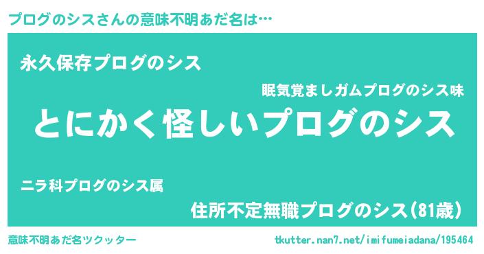 | ヘコむあだ名 | 『プロ太郎』『プログのシス(震え声)』 |