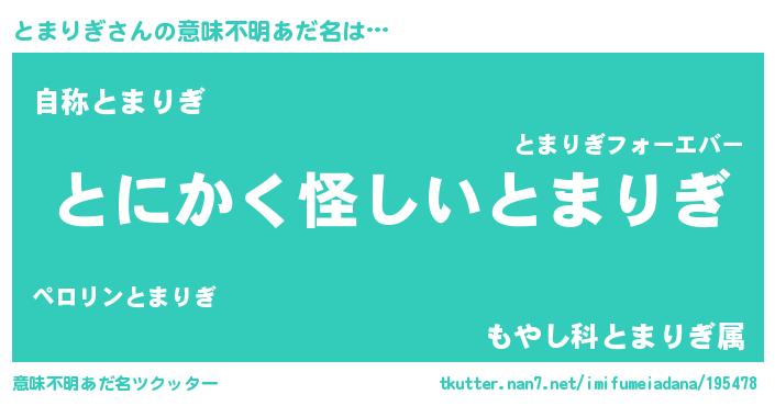 | 胡散臭い通販商品みたいなあだ名 | 『信頼と実績のペンダント…その名も「とまりぎ」』 |