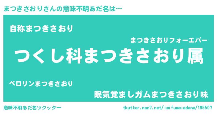 | 肩書あだ名 | 『まつきさおり少将』『まつきさおり閣下』 |