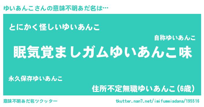 | 男性向けラノベタイトル風あだ名 | 『おまえをオタクにしてやるから、俺をゆいあんこにしてくれ! 』 |