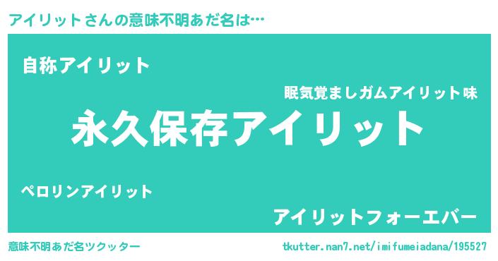 | 胡散臭い通販商品みたいなあだ名 | 『前代未聞の健康食品…その名も「アイリット」』 |
