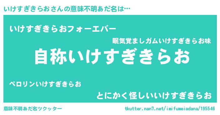 | 胡散臭い通販商品みたいなあだ名 | 『芸能人もオススメする高麗人参…その名も「いけすぎきらお」』 |