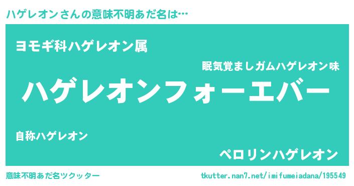 | ファンタジー風あだ名 | 『エターナルハゲレオンー』『ハゲフェル』 |