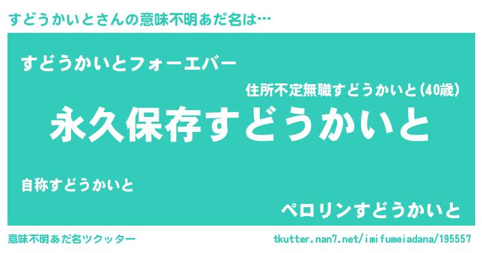 | 男性向けラノベタイトル風あだ名 | 『すどうかいとという概念が存在しない退屈な世界 』 |
