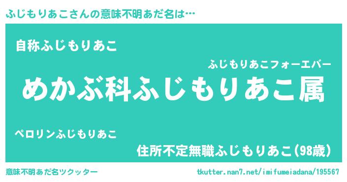 | 男性向けラノベタイトル風あだ名 | 『はたらくふじもりあこさま!』 |