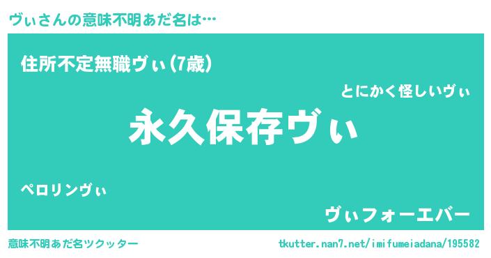 | 男性向けラノベタイトル風あだ名 | 『ヴぃという概念が存在しない退屈な世界 』 |