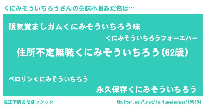 | ヘコむあだ名 | 『くにみそういちろう(爆)』『酢こんぶ』 |
