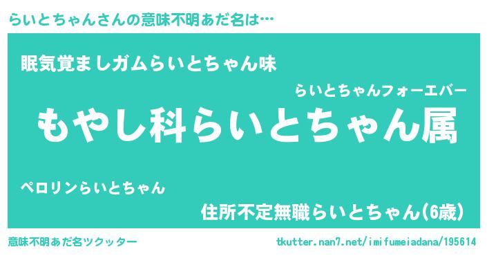 | 男性向けラノベタイトル風あだ名 | 『転生したららいとちゃんだった件』 |