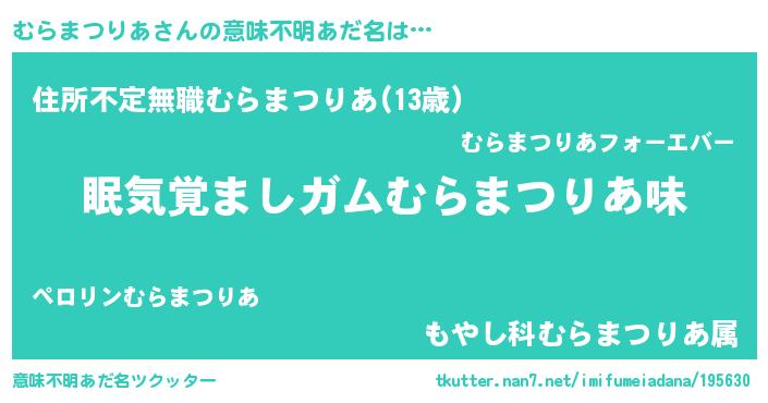 | 胡散臭い通販商品みたいなあだ名 | 『100人中100人が認めたイリジウム磁石…その名も「むらまつりあ」』 |