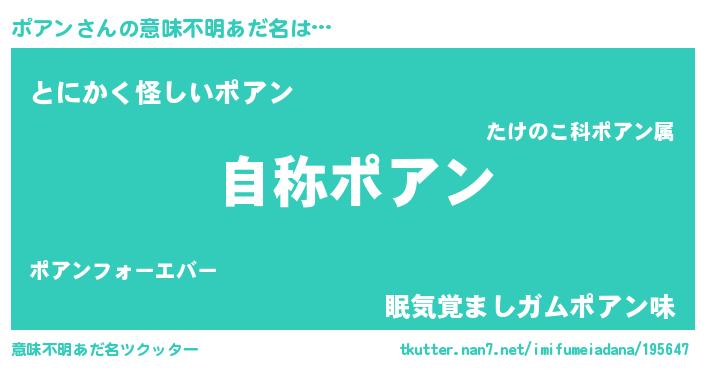 | 男性向けラノベタイトル風あだ名 | 『Re:ポアンから始める異世界生活』 |