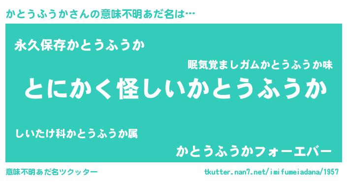| 男性向けラノベタイトル風あだ名 | 『かとうふうかに滅ぼされるだけの簡単なお仕事です』 |