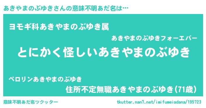 | ポケモン風あだ名 | 『メロアッキ』『ヒアキヤマノブユキ』 |