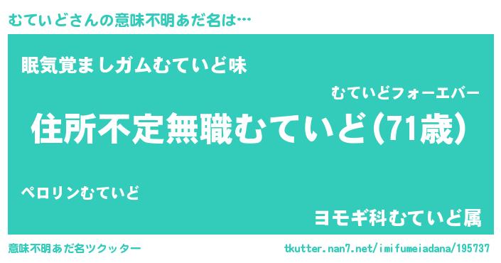 | 胡散臭い通販商品みたいなあだ名 | 『世界中を虜にした世界で10本だけ現存している希少なブランデー…その名も「むていど」』 |