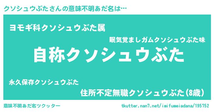 | 肩書あだ名 | 『クソシュウぶた閣下』 |