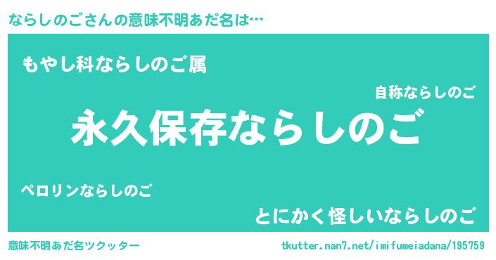 | 男性向けラノベタイトル風あだ名 | 『ならしのごに滅ぼされるだけの簡単なお仕事です』 |