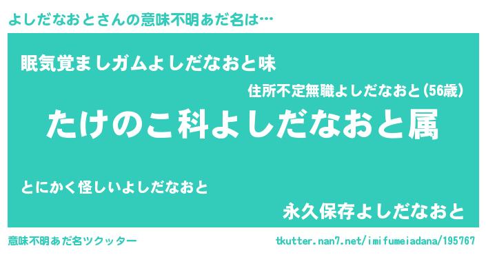 | 男性向けラノベタイトル風あだ名 | 『転生したらよしだなおとだった件』 |