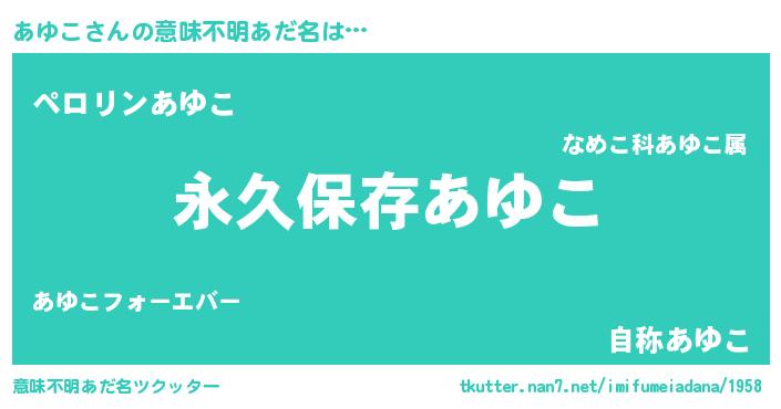 | ヘコむあだ名 | 『あゆこ(笑)』『あゆにー』『豆乳』 |