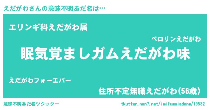 | 男性向けラノベタイトル風あだ名 | 『おまえをオタクにしてやるから、俺をえだがわにしてくれ! 』 |