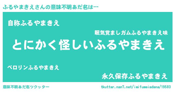 | 男性向けラノベタイトル風あだ名 | 『ふるやまきえに滅ぼされるだけの簡単なお仕事です』 |