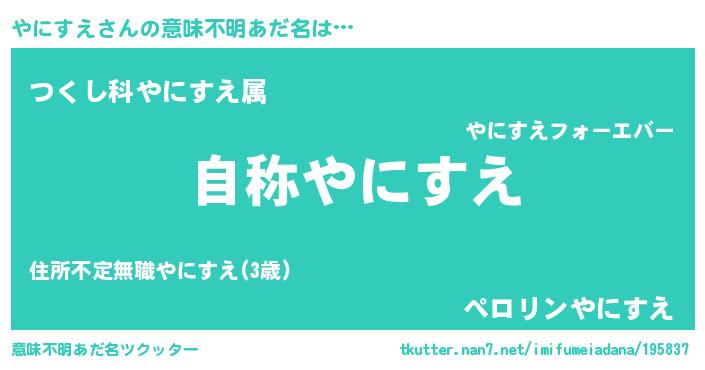 | 男性向けラノベタイトル風あだ名 | 『Re:やにすえから始める異世界生活』 |