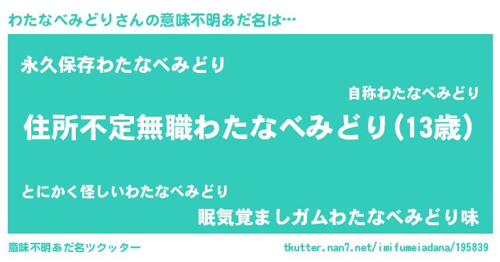 | 欧米人風あだ名 | 『わたなべみどり・ステッグマイヤー』 |