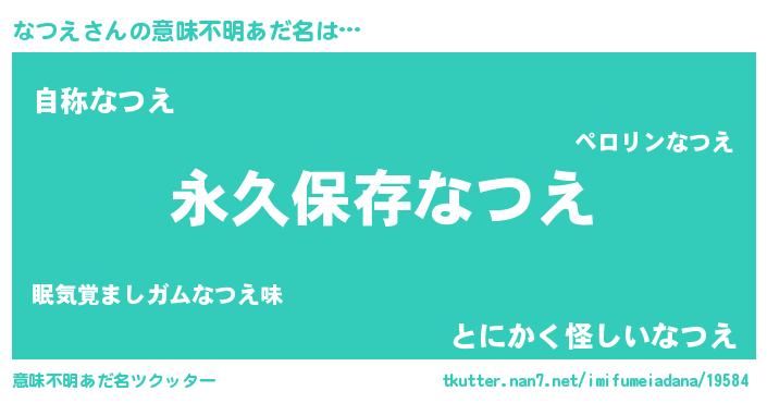| 男性向けラノベタイトル風あだ名 | 『なつえという概念が存在しない退屈な世界 』 |