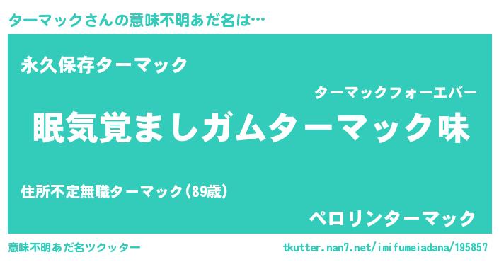 | 男性向けラノベタイトル風あだ名 | 『おまえをオタクにしてやるから、俺をターマックにしてくれ! 』 |