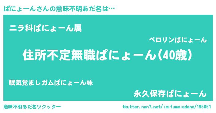 | 料理風あだ名 | 『ぱにょーんのカルパッチョ風』 |