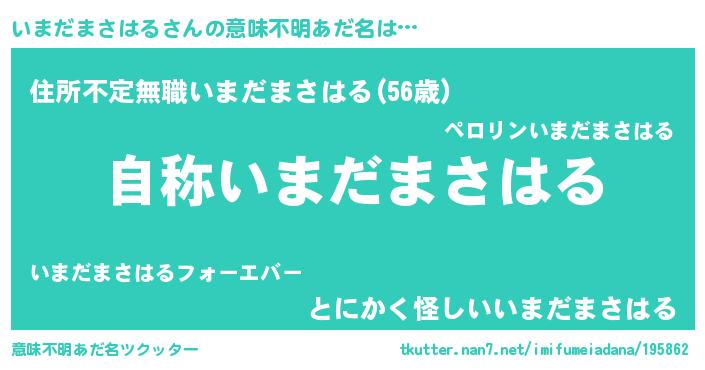 | 欧米人風あだ名 | 『アンジェラ・いまだまさはる』 |