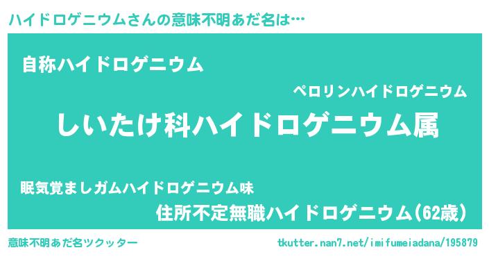 | 胡散臭い通販商品みたいなあだ名 | 『ガンによく効くアガリクス…その名も「ハイドロゲニウム」』 |