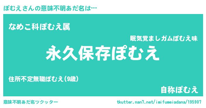 | 胡散臭い通販商品みたいなあだ名 | 『絶対に幸福をもたらす水素水…その名も「ぽむえ」』 |