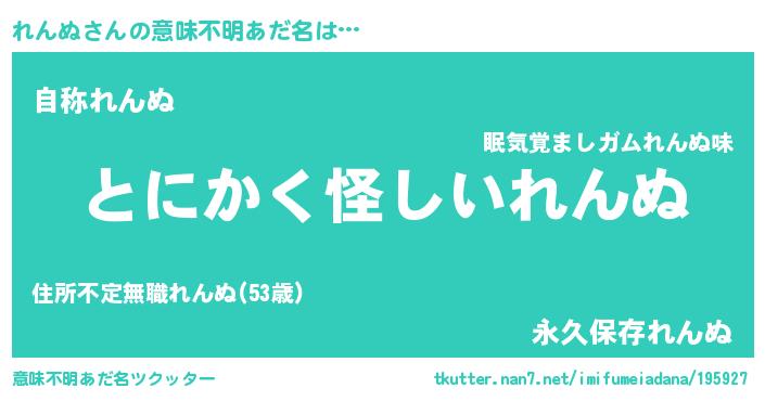 | 男性向けラノベタイトル風あだ名 | 『れんぬの嫁は女の子じゃないと思った?』 |