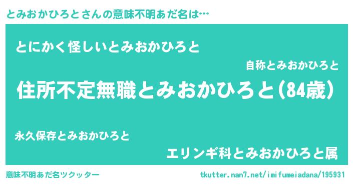 | 料理風あだ名 | 『とみおかひろとのカルパッチョ風』 |