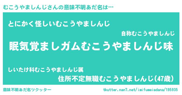 | 男性向けラノベタイトル風あだ名 | 『おまえをオタクにしてやるから、俺をむこうやましんじにしてくれ! 』 |
