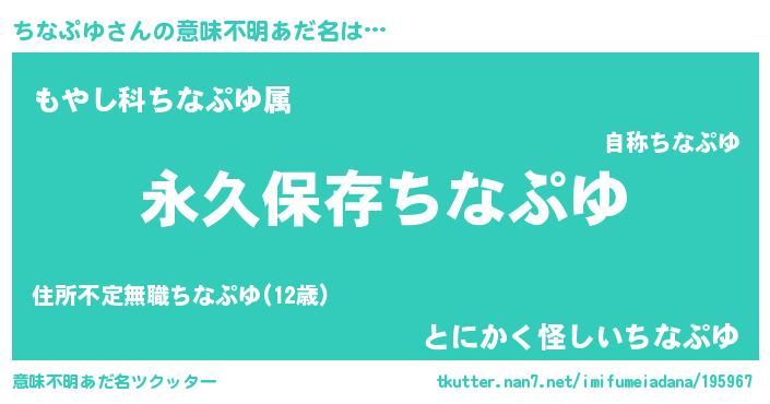 | ヘコむあだ名 | 『ちなぷゆ(苦笑)』『ちなを』 |