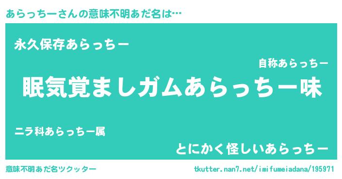 | 欧米人風あだ名 | 『ダニエルあらっちー』 |