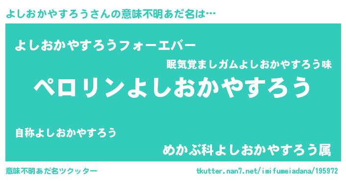 | 胡散臭い通販商品みたいなあだ名 | 『億万長者になれる霊験あらたかなお札…その名も「よしおかやすろう」』 |