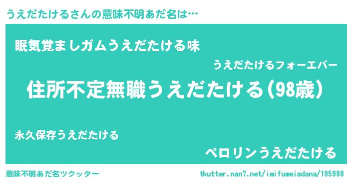 | 男性向けラノベタイトル風あだ名 | 『この素晴らしい世界にうえだたけるを!』 |