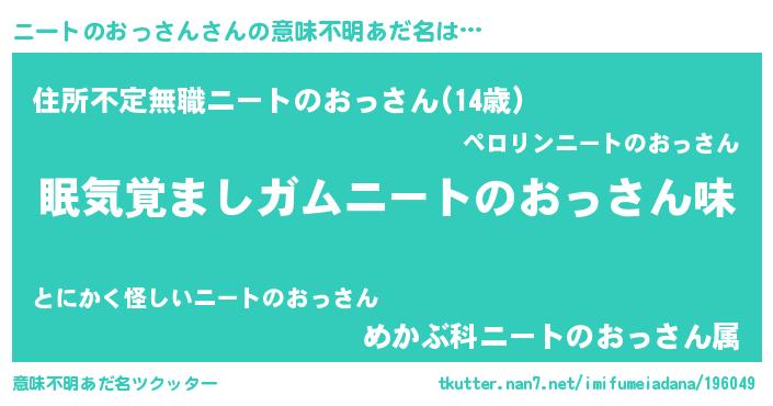 | 欧米人風あだ名 | 『ダニエルニートのおっさん』 |