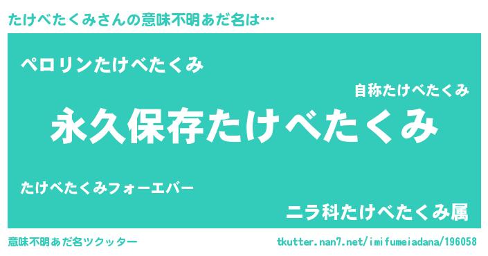 | 欧米人風あだ名 | 『たけべたくみ・ステッグマイヤー』 |