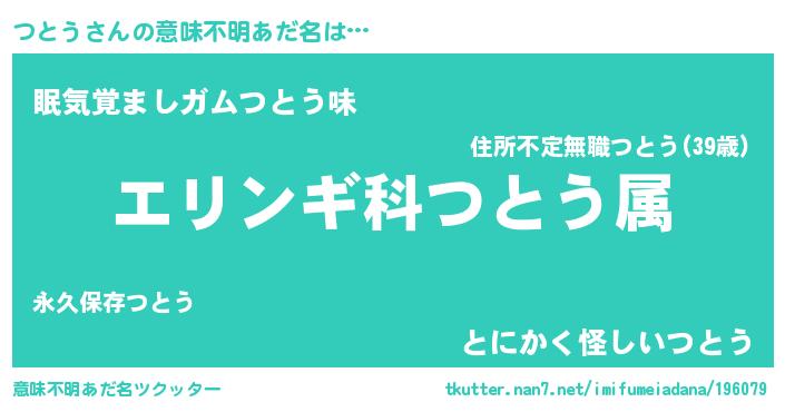 | 男性向けラノベタイトル風あだ名 | 『ツトウスレイヤー』 |
