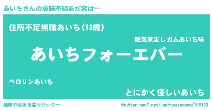 | 女子向けラノベタイトル風あだ名 | 『あいちの婚約者』『あいちは平凡を望む』 |