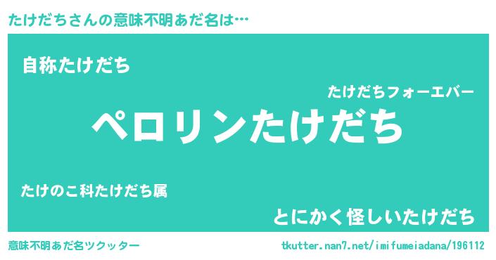 | ヘコむあだ名 | 『たけにー』『たけっ子』『なまこ酢』 |
