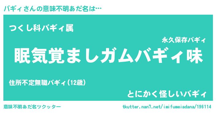 | ヒーロー風カッコイイあだ名 | 『慈愛の使者バギィ』『炎刃騎士バギ』 |