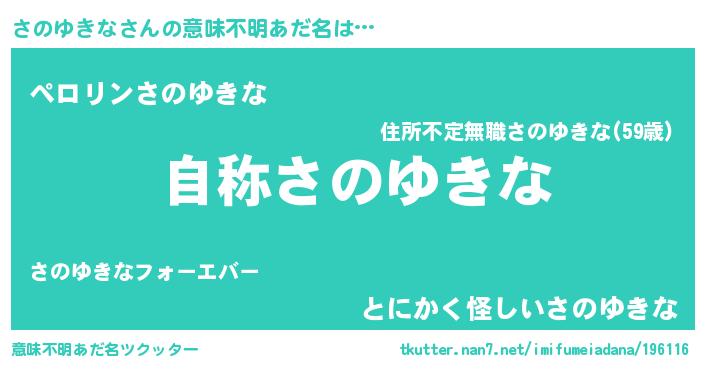 | 欧米人風あだ名 | 『ケンブリッジさのゆきな』 |