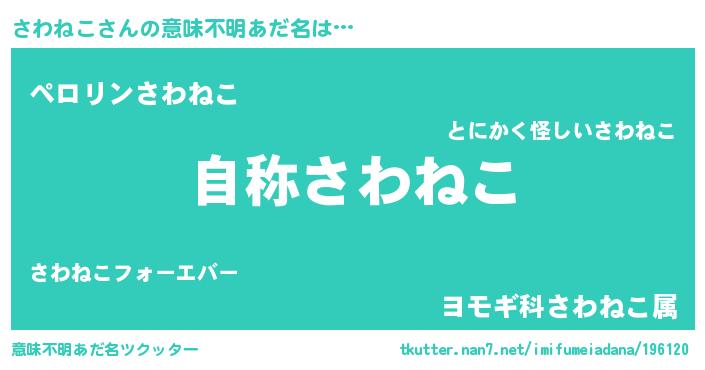| ヒーロー風カッコイイあだ名 | 『究極戦士サワネコ』『スーパーサワネコ』 |