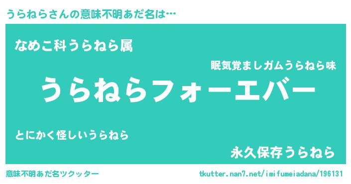 | ヒーロー風カッコイイあだ名 | 『ウルトラうらねらマン』『ネオウラネラ』 |