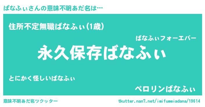 | ヘコむあだ名 | 『ばなふぃ(爆)』『ばなにー』『豆乳』 |
